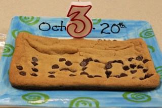 So we made a chocolate chip cookie party!! Jake got a giant cookie with his name spelled out in chocolate chips!! (Which Eric made by the way! GO DAD!!)