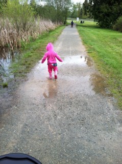 Hannah could not help herself – every.single.puddle!!