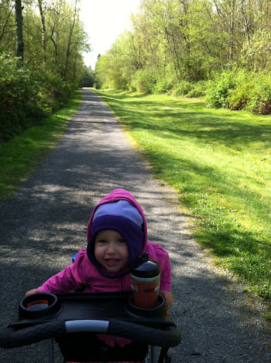 The sun decided to emerge today so without hesitation we loaded up and decided to hit the trail!! (Yes, it did take the usual half hour to get us dressed, peeing, and loaded up!)