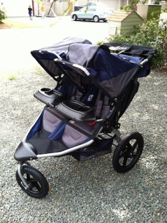 I have been round and round trying to find the “just right” mobile of some kind to incorporate the kiddos into workouts. I have the bike trailer, but of course Jake is now at the point where he likes to ride his own bike. Hannah still likes to ride though so often Jake and I ride and Hannah gets the trailer to herself – win – win- win!