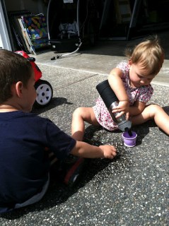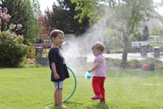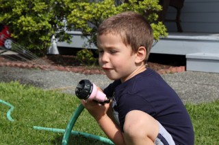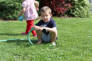 | More fun with the hose! (You better not shoot Mommy!) |
