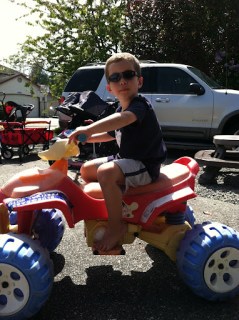 | I really don’t know what could be more fun then a grass spreader and some sunglasses…. |