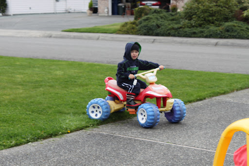 After church and braving the grocery store for ONLY FIVE items that inevitably turned into 25 – I felt a little blah despite the sun making a seemingly rare appearance. The kiddos and I puttered around the yard, picking some weeds, Hannah picking some radishes that weren’t quite ready yet, me fixing my little garden “fence” after Hannah tore it out, digging the wormy strawberries out of Hannah’s mouth – you know, the usual! Jake was riding his “monster truck” (aka – the Dora quad):