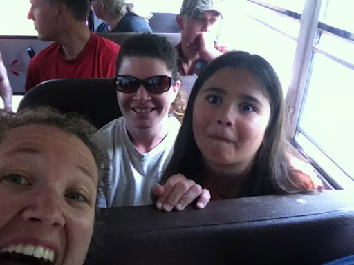 This was on the bus ride from the parking area to the festival area….notice how squeaky clean we are!? Bwahhahahaha! That changed fast!