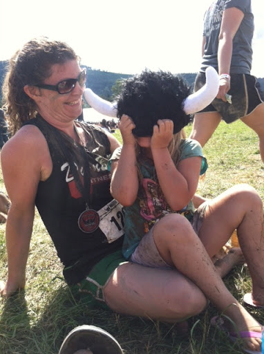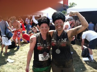 And here are me, my sister, and my brother in law’s thumb! This was post shower! It was insane. The “shower”, if you could call it that, was a guy with a fire hose spraying us muddy warriors off in a cattle pen. It was ridiculous. And not effective as evidenced by the slop still hanging on my arm. I have to say, it was SO much fun, but my shower may never be the same!