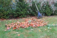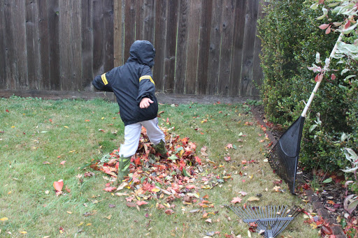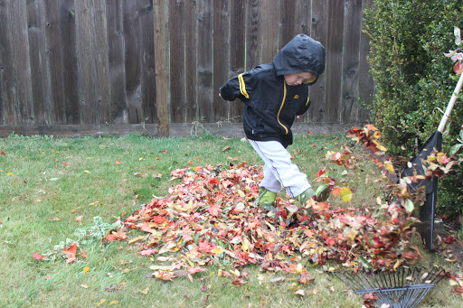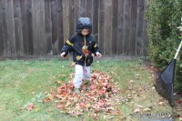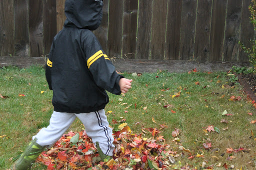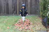 Jake would barely let me rake this mini pile before diving in to kick them all around! He had such fun!