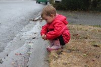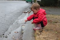 Hannah on the other hand was content to play in the “river” as both her and Jake refer to it….it’s the side of the curb. It was a “rushing river” that they felt compelled to toss leaves into and watch them float away.