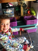 And in one of our “inside recess” kind of days, we made beaded necklaces! Jake was loving them. Cracked me up! They love to wear the pjs EVERYWHERE. I can barely get Jacob out of them!