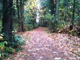 I started the day with a massage this morning and it was FABULOUS! Long overdue and much needed! I came back to the house and the long-missed “ball of fire in the sky” made a rare appearance. After playing with the kids in the yard for a while, I knew I would regret it if I didn’t seize the opportunity to run on such a nice day. November in the Pacific Northwest doesn’t lend itself to nice days like this very often. So inside to grab some running clothes, get shoes for the kids (they run around barefoot whenever they can, regardless of the temperature) and load up the bike, trike, and stroller. And 3 bananas. And apples. And water. Oh! And I now have a Garmin – gotta test it against the app on the iPhone….okay – I think I got everything. Down to the trails!