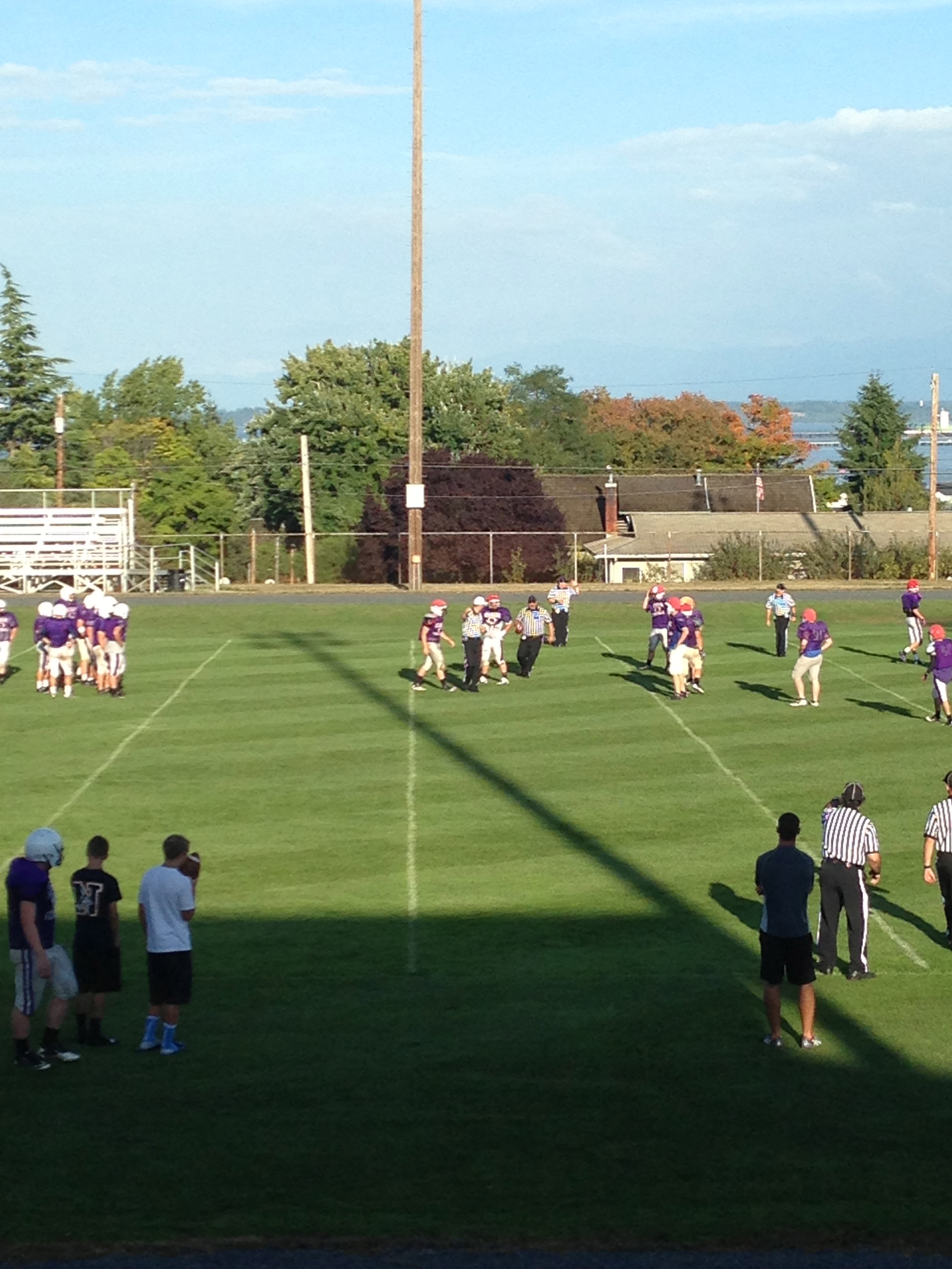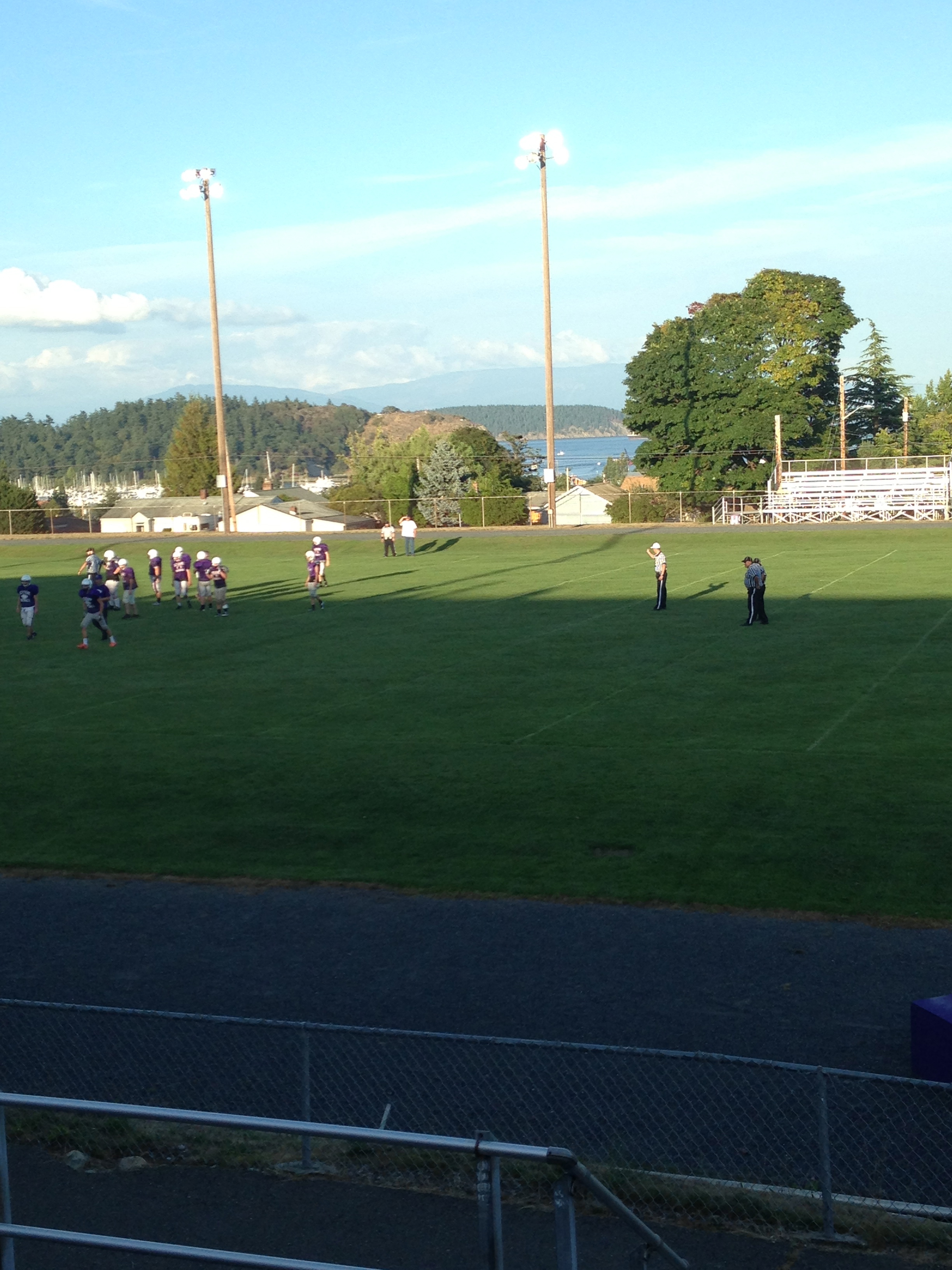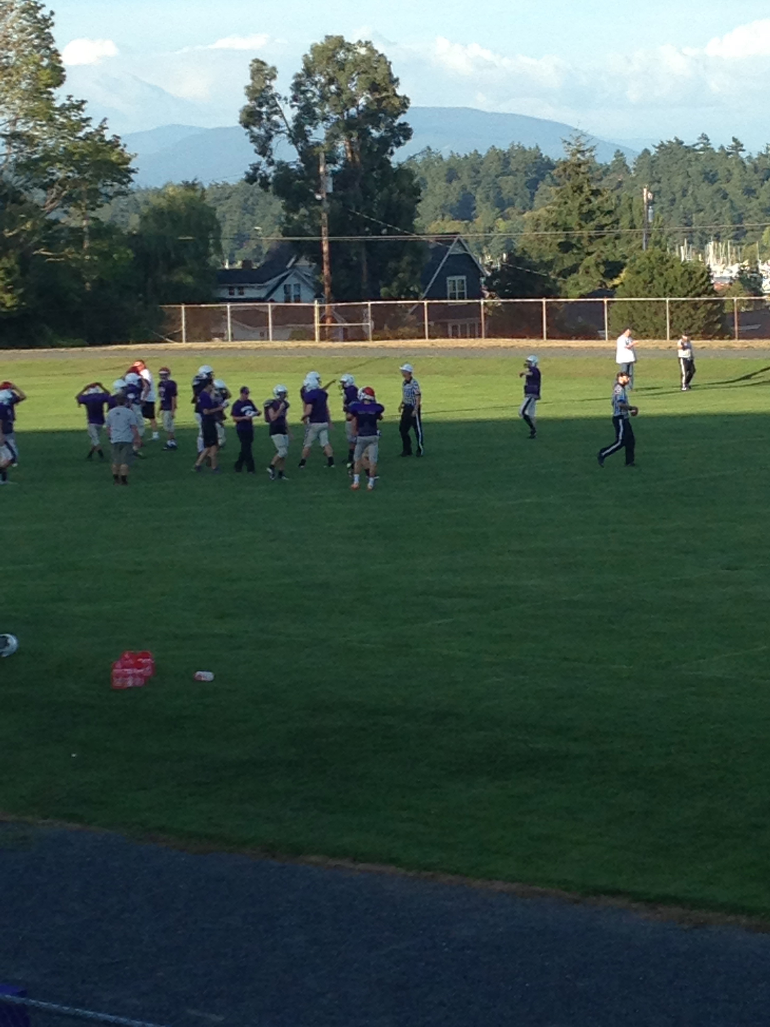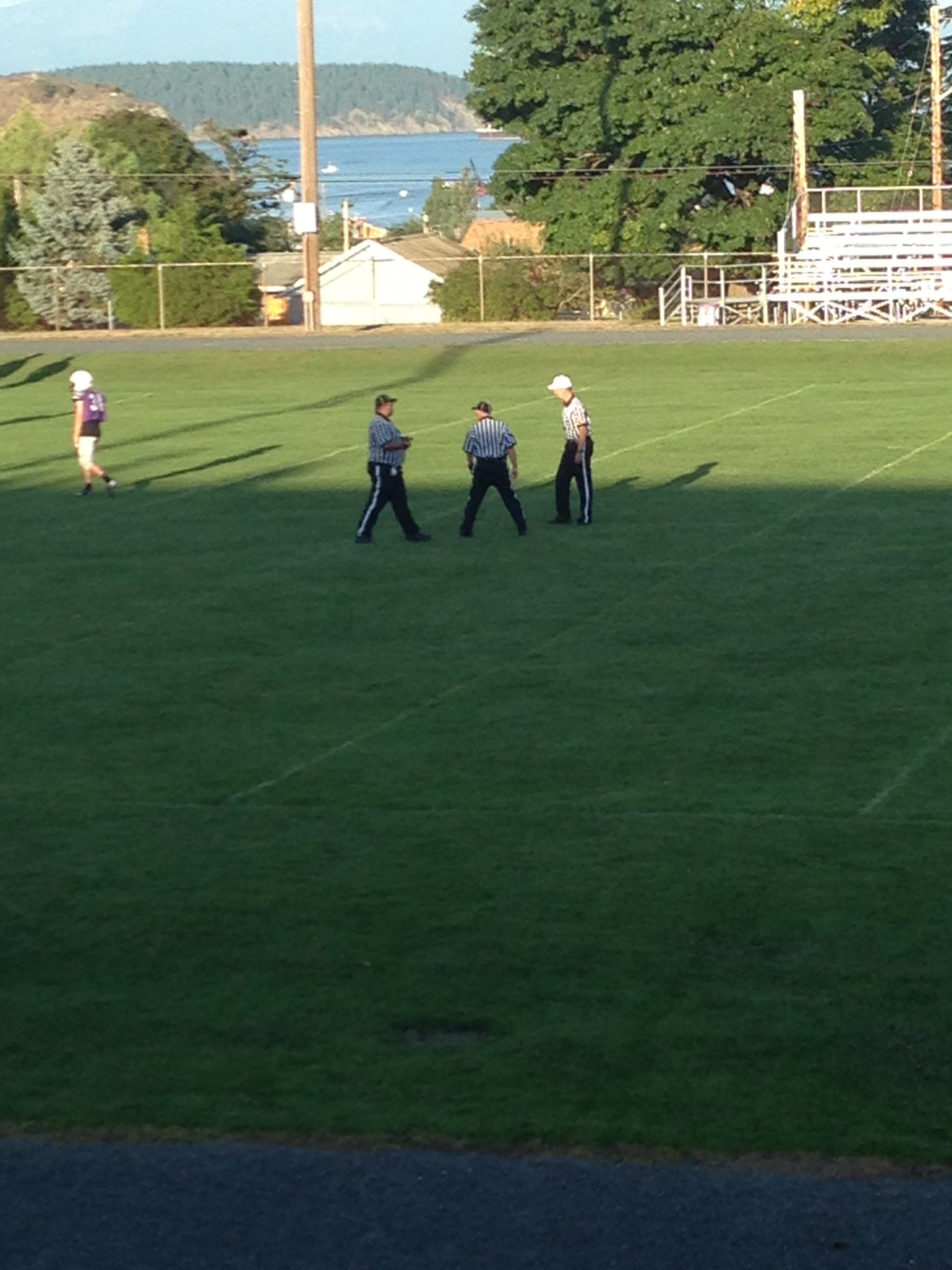 I sat on the bleachers with the minions and attempted to help them understand what and why Daddy was out there “in the stripey shirt”. What night of football is complete without the “I need a cracker,” and “I need to go potty,” and racing up and down the bleachers 379 times?