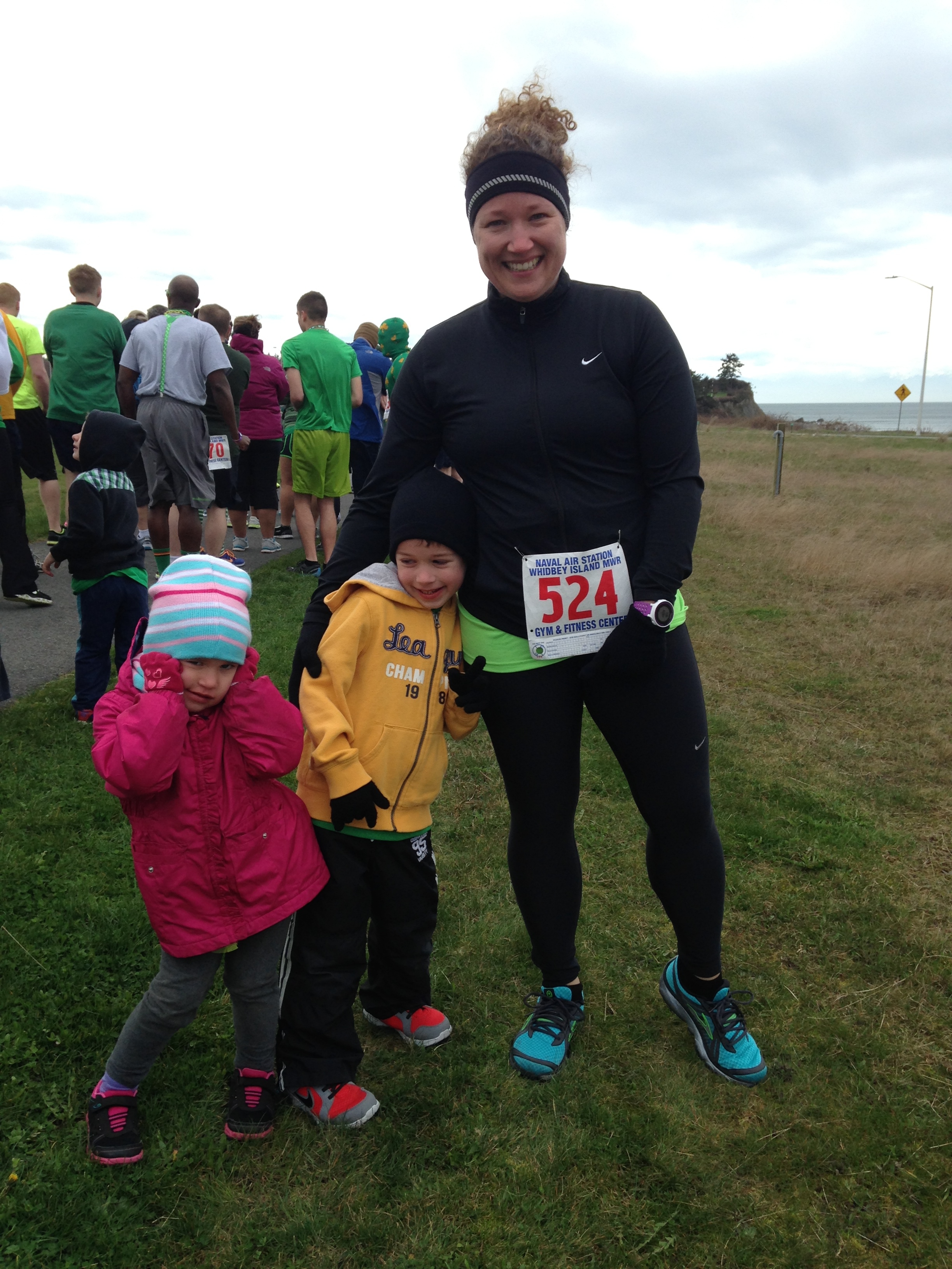 Last year we ran the St. Patrick’s day fun run out on base. We did the 1 mile run, knowing the kiddos wouldn’t be able to do much more than that. We also had the benefit of the stroller while Eric was deployed, so worst case scenario, they could take turns taking breaks.
