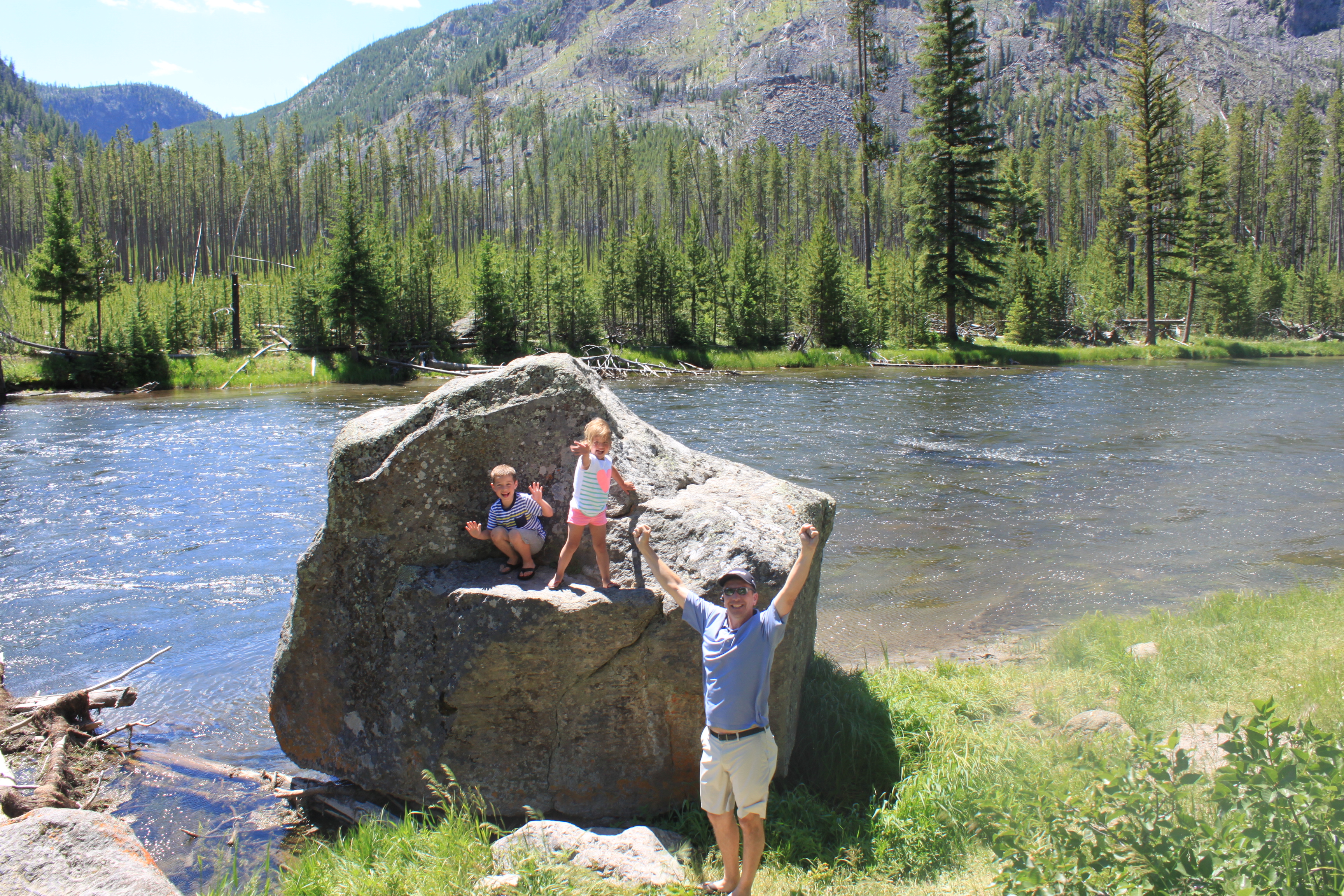 What DOES count as a vacation is Yellowstone and It did not disappoint! (Military peeps get into national parks free, by the way!) Here are the minions estimating the height of the trees earlier today. They came up with a million inches. (Inches is the only measurement they currently know. Time to work on that!)