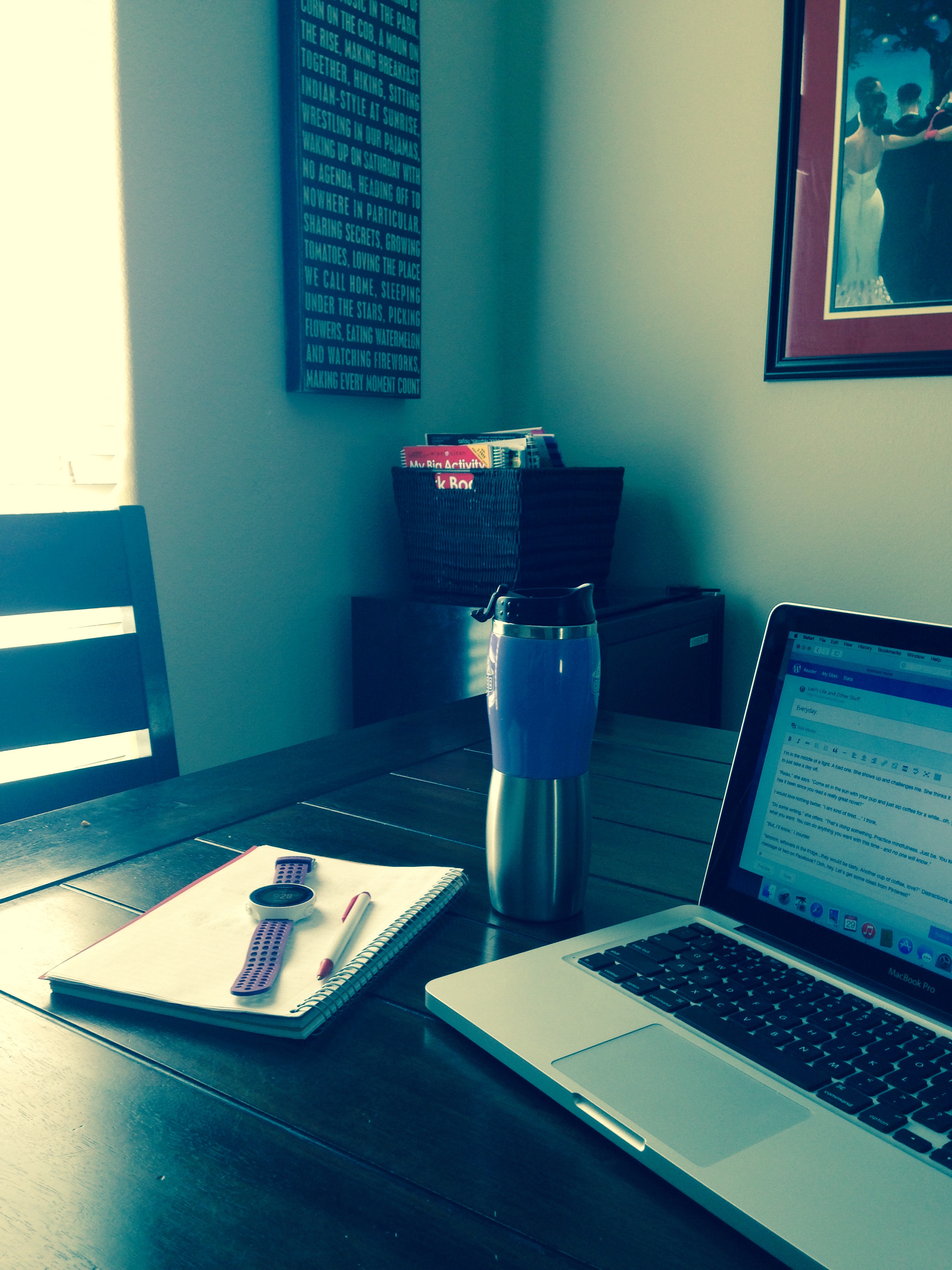 “Mmmm, leftovers in the fridge…they would be tasty. Another cup of coffee, love?” Distractions are her gift. “How about a quick message or two on Facebook? Ooh, hey. Let’s get some ideas from Pinterest!”
