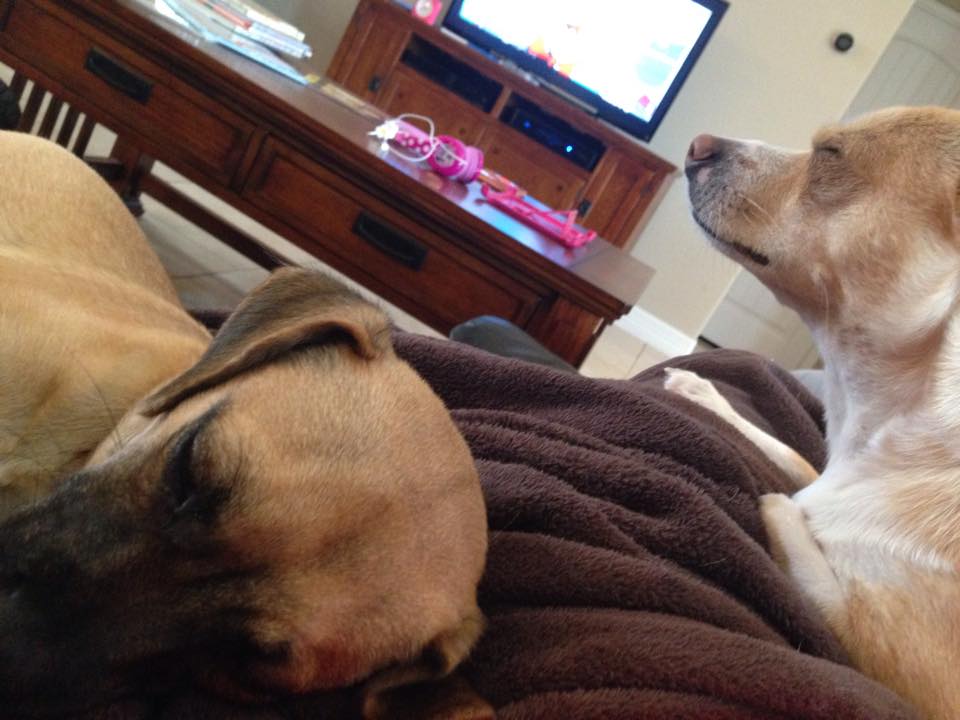 We adopted her, and even Eric had to admit he was taken with her. She is such a love, a bit more mellow than Buck, but still a puppy so she brings out the playfulness in him.