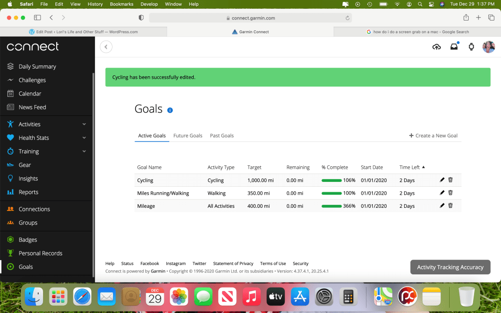 Goals for mileage were blown up and achieved in the latter part of the year when the Peloton arrived, although the walk/run goal was done throughout the year. Not too shabby for 2020, if I do say so myself. Looks like I will be upping that cycling mileage goal this year for sure!